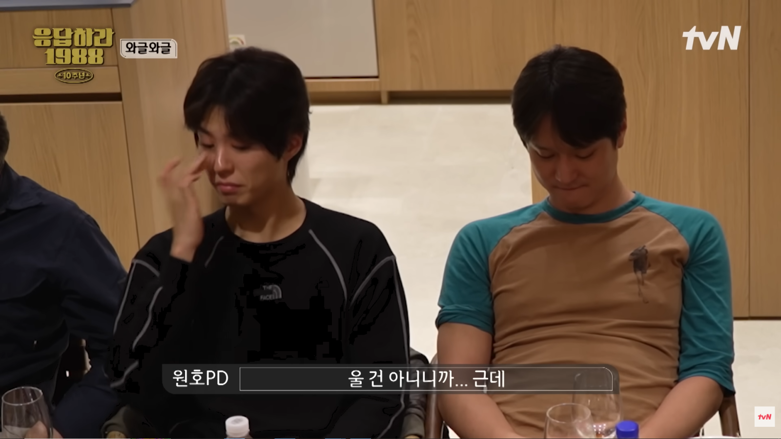 신원호 PD는 “방금 엄마가 돌아가신 아저씨를 앞에 두고 울 수는 없었는데, 이상하게 눈물이 너무 안 나왔다”며 “카메라가 성동일 쪽으로 가면 눈물이 터지고 다시 오면 멈췄다”고 당시 상황을 설명했다.
