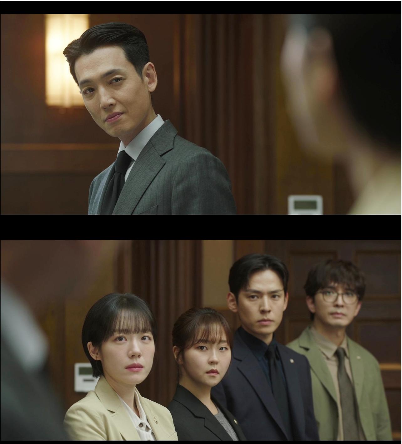 강다윗은 오앤파트너스 대표 오정인(이유영)을 변호인으로 선임해 반격에 나섰다. 오정인은 강다윗 근무지 발령을 둘러싼 주장을 “자의적 해석”이라며 선을 그었고, 수사 검사와 유백만이 골프 모임을 즐겼다는 점을 언급하며 증언의 신빙성을 흔들었다. 이어 판사에게 수사 지휘권이 없다고 못 박으며 직권남용 의혹을 정면으로 반박했다.