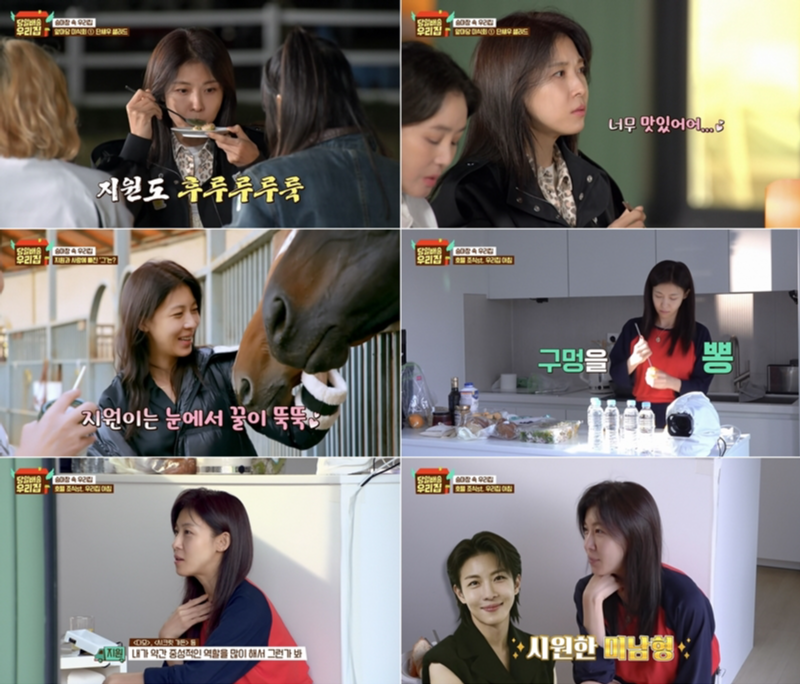 하지원은 6일 방송된 JTBC 예능 ‘당일배송 우리집’에서 로망 공간으로 마련된 ‘승마장 속 우리집’을 체험하며 솔직한 매력과 세심한 면모를 드러냈다. 이날 하지원은 윤남노 셰프가 직접 만든 저녁을 먹으며 리액션을 아낌없이 보였고, 이른 아침에는 말과 교감하며 특별한 분위기를 만들었다.