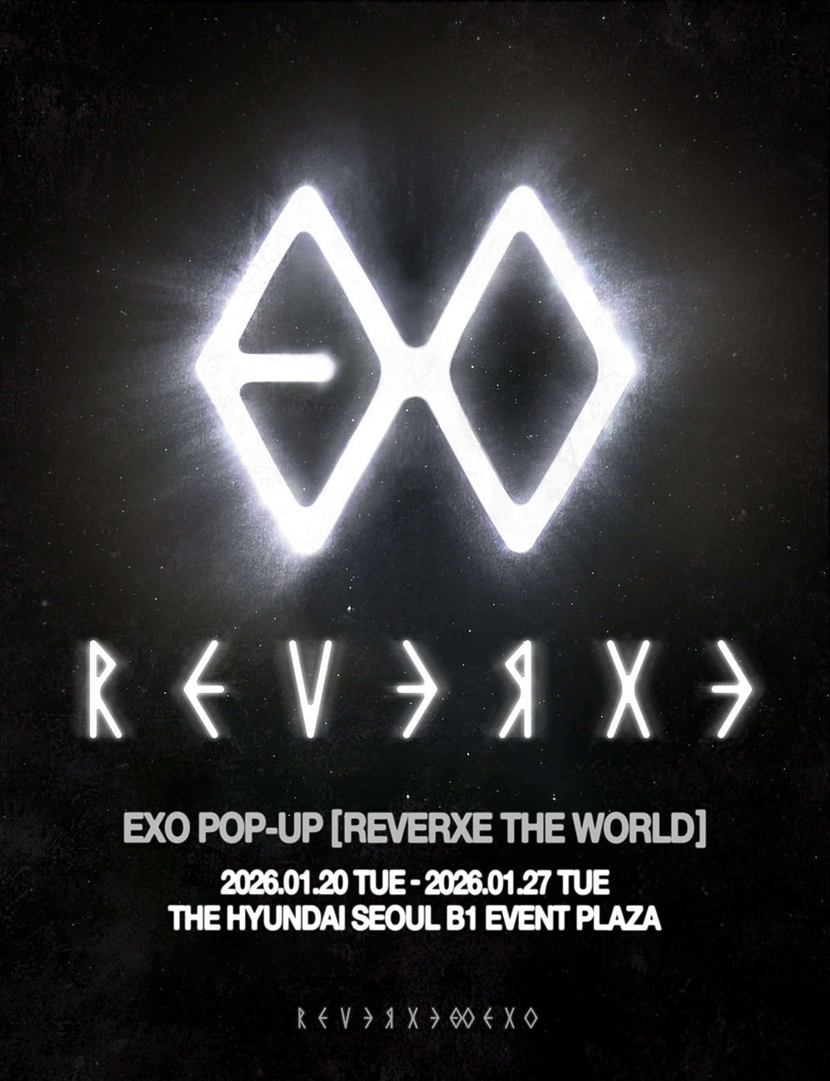 엑소 팝업스토어 ‘REVERXE THE WORLD’(리버스 더 월드)는 1월 20일부터 27일까지 8일간 서울 영등포구 더현대 서울 B1 이벤트 플라자에서 개최되며, 오랜 시간 엑소 컴백을 기다려온 팬들에게 색다른 즐거움을 선사할 것으로 보인다.