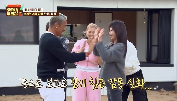 그러나 마지막 손바닥 밀치기 게임에서는 반전이 펼쳐졌다. 모두가 추성훈의 손쉬운 승리를 예상한 가운데, 하지원은 예상 밖의 유연함과 끈질긴 버티기로 접전을 만들어냈다. “나 왜 잘해?”라며 스스로도 놀란 하지원은 뜻밖의 선전으로 현장 도파민을 끌어올렸다.