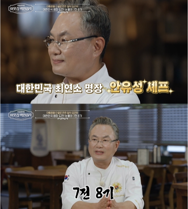 안유성은 대한민국 제16대 조리명장으로, 2023년 51세에 명장으로 선정되며 ‘최연소’ 타이틀을 거머쥐었다고 말했다. 그는 일곱 번 낙방 끝에 여덟 번째 도전에서 합격한 과정을 꺼내며 “합격 소식을 듣고 펑펑 울었다”고 털어놨다. 명장 심사를 위해 제출했던 ‘일급비밀 노트’도 언급하며 “제 인생의 전부가 담겼다. 제자들한테도 쉽게 보여주지 않는다”고 밝혔다.