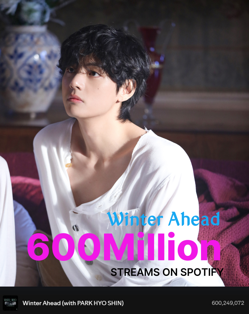 방탄소년단(BTS) 뷔가 박효신과 협업한 ‘윈터 어헤드(Winter Ahead(with Park Hyoshin))’가 17일 세계 최대 음원 플랫폼 스포티파이에서 누적 6억 스트리밍을 돌파했다. 이 곡은 스포티파이 글로벌 차트에 367일 연속 이름을 올리며 장기 흥행을 이어가고 있다.