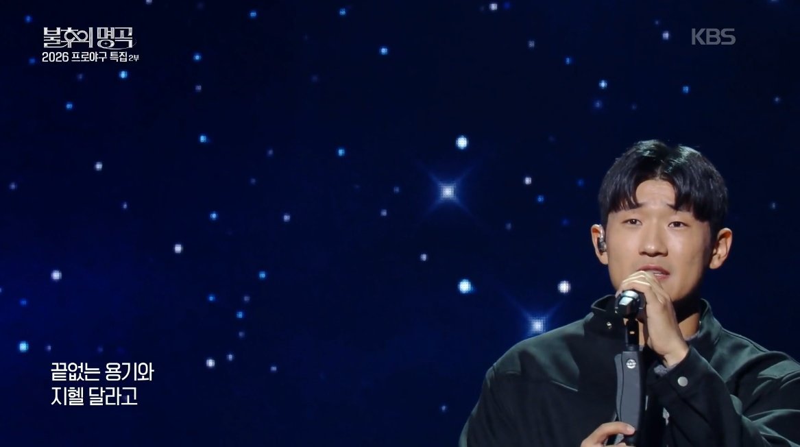 ‘2026 프로야구’ 특집의 대미를 장식할 마지막 주자로 ‘떠오르는 좌완투수’ 임준형이 출격했다. 임준형은 KT위즈의 공식 응원가의 원곡인 ‘마법의 성’을 선곡, “구단 팬분들이 올 한 해 좋은 기운을 받으셨으면 좋겠다”라고 소개해 훈훈함을 자아냈다. 임준형은 호소력 짙은 목소리와 밝고 경쾌한 에너지로 야구장을 방불케 하는 팬들의 환호성을 자아냈다. 임준형의 열창 뒤로 ‘여러분이 있기에 저희가 있습니다’라는 메시지가 스크린을 채우자, 팬들도 일제히 기립하며 화답해 감동을 전했다. 전사민은 “진짜 가수가 부른 것 같았다. 제가 봐 왔던 ‘불후’ 같았다”라며 극찬했다.
