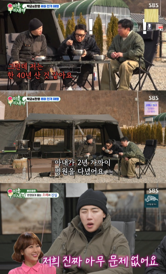 또 이상민이 “박군이 집에 잘 안 들어가고 자신감이 없어 보인다”고 하자, 한영은 “그건 부부 사이 문제가 아니다. 일이나 미래 때문에 혼자 생각이 많은 것 같다”며 “저희 잘살고 있다”고 못 박았다.
