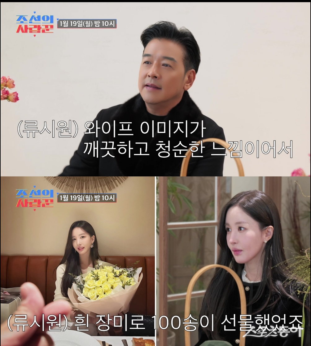 [스포츠동아 이정연 기자] 류시원이 ‘조선의 사랑꾼’에서 19세 연하 아내를 방송 최초로 공개하며 흰 장미 100송이 로맨스까지 꺼낸다.