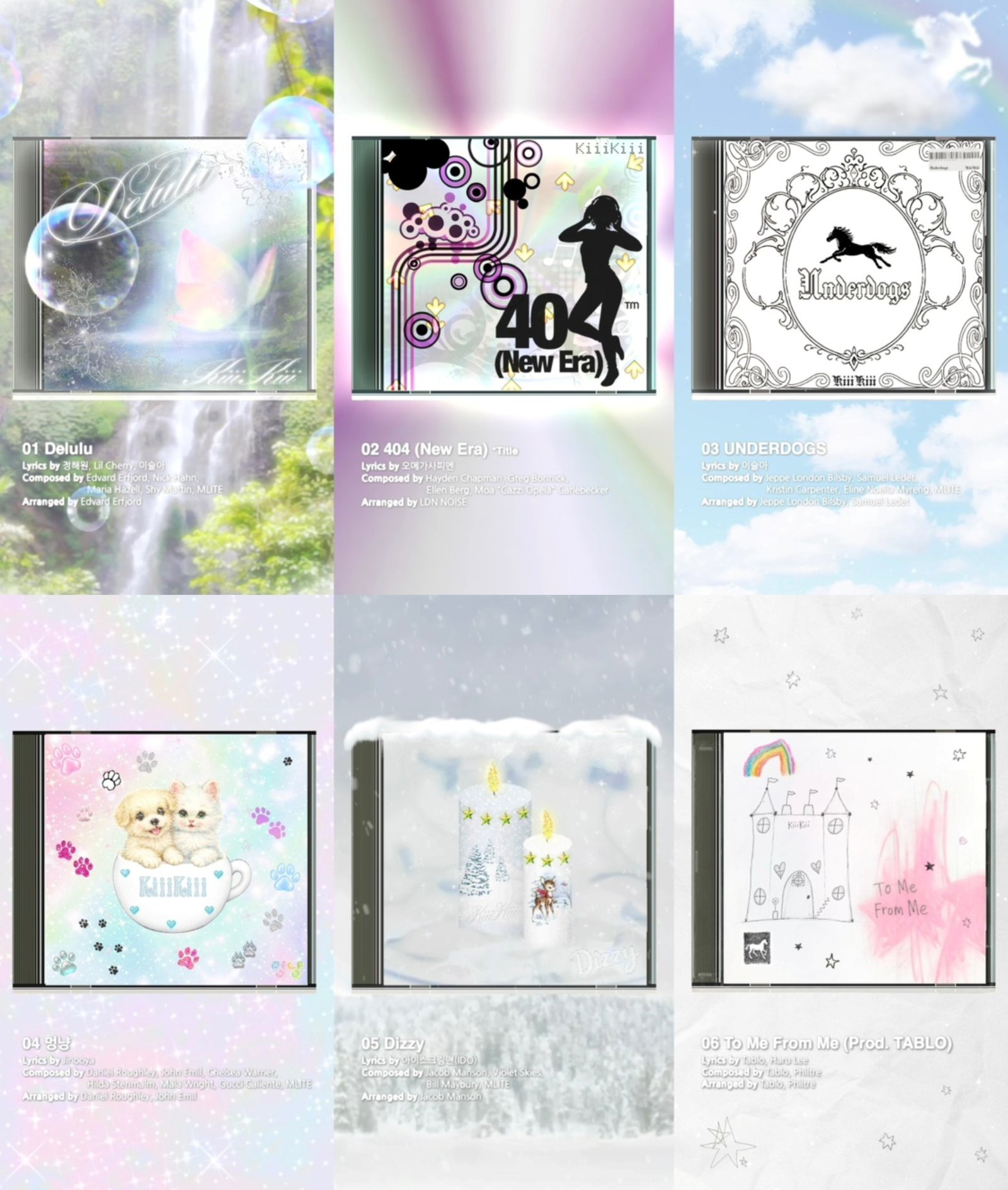 또한, 웅장하고 신비로운 사운드의 ‘Underdogs(언더독스)’, 귀엽고 재치있는 리듬과 노랫말의 ‘멍냥’, 따뜻한 감성을 담은 ‘Dizzy(디지)’, 그리고 지난해 11월 디지털 싱글로 공개되어 화제를 모았던 ‘To Me From Me (Prod. TABLO)(투 미 프롬 미)’까지 다양한 곡들이 수록돼 키키의 확장된 음악 세계를 예고했다.