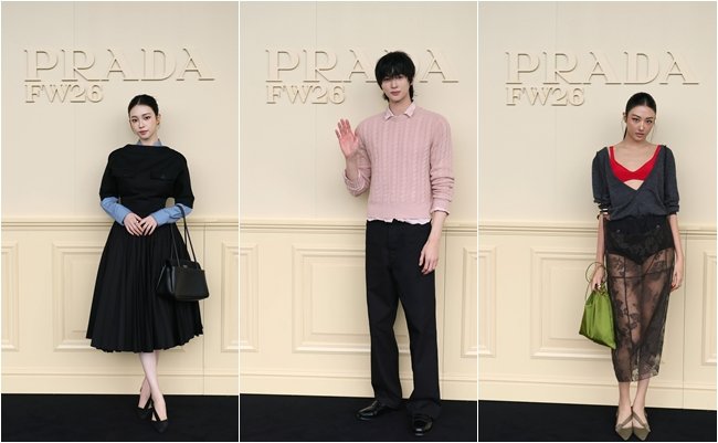 [스포츠동아 이정연 기자] 에스파 카리나와 미야오 가원, 배우 변우석이 프라다 2026 가을/겨울 남성복 패션쇼에 참석해 각기 다른 스타일로 존재감을 드러냈다.