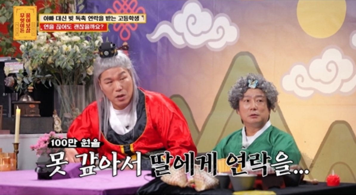19일 방송된 KBS Joy ‘무엇이든 물어보살’에는 사채업자로부터 반복적인 전화를 받게 됐다는 만 16세 고등학교 1학년 학생이 고민을 털어놨다. 마스크와 모자를 쓴 채 등장한 그는 “어느 날부터 모르는 번호로 전화가 와 ‘부장에게 연락하라’며 겁을 줬다”고 당시 상황을 전했다.