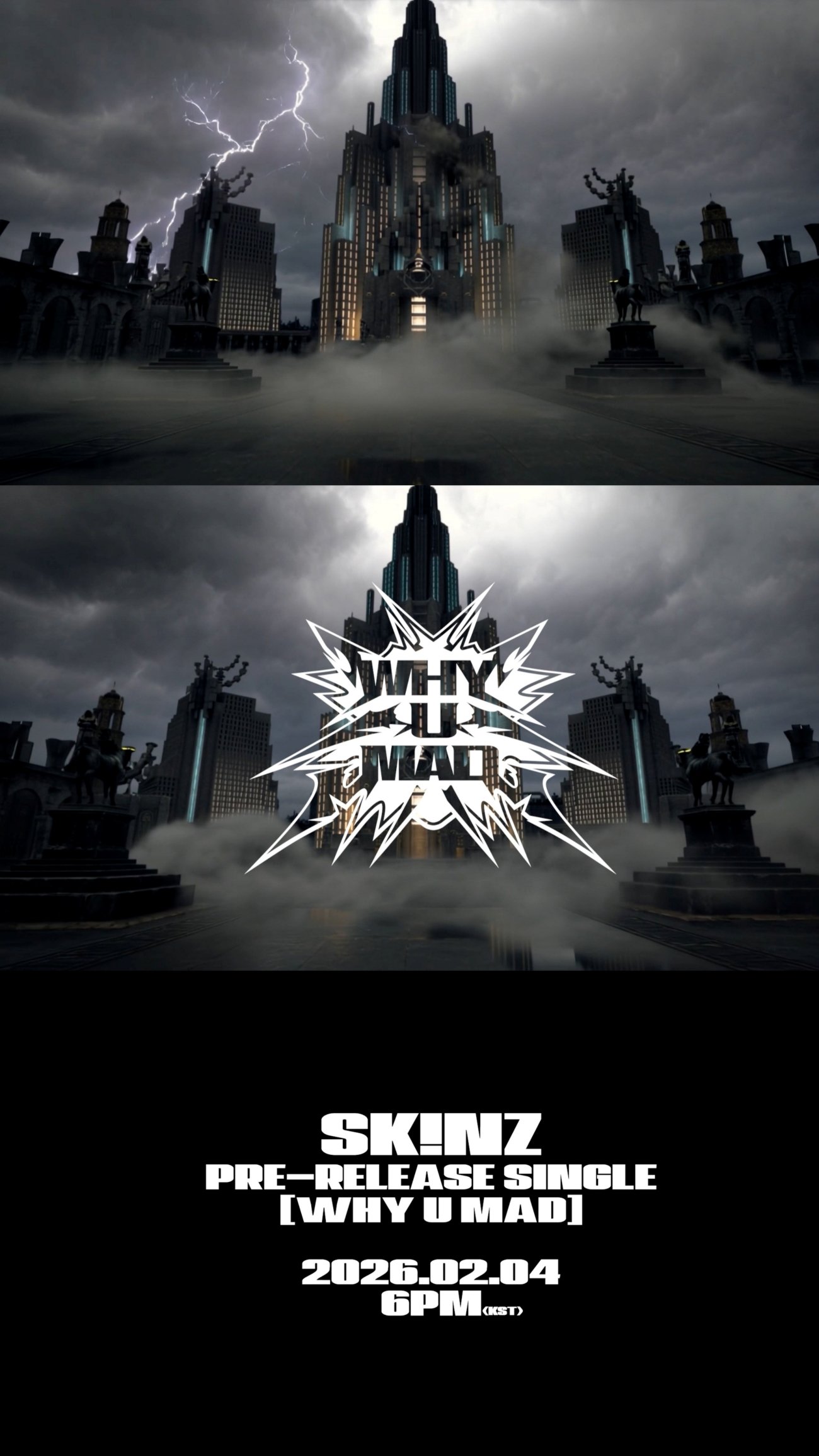 이번 선공개 곡 ‘와이 유 매드’는 추후 발매될 첫 번째 미니앨범의 수록곡으로, 이미 지난 ‘2025 SBS 가요대전’에서 무대를 통해 최초 공개된 바 있다. 당시 스킨즈는 강렬한 퍼포먼스와 와일드한 매력으로 뜨거운 호응을 얻은 바 있다.