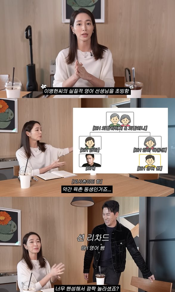 20일 유튜브 채널 ‘이민정 MJ’에는 ‘이민정 영어 알려주러 와서 건치 미소만 남기고 간 BH 사촌동생’이라는 제목의 영상이 올라왔다. 영상에서 이민정은 “오늘 모셔볼 영어 선생님은 저희 가족”이라며 “남편의 이모 아들이니까 육촌 동생이다. 이병헌 씨의 실질적인 영어 선생님”이라고 션 리차드를 소개했다. 션 리차드는 자리에 앉자마자 “너무 핸섬해서 깜짝 놀라셨죠”라고 말하며 너스레를 떨었다.