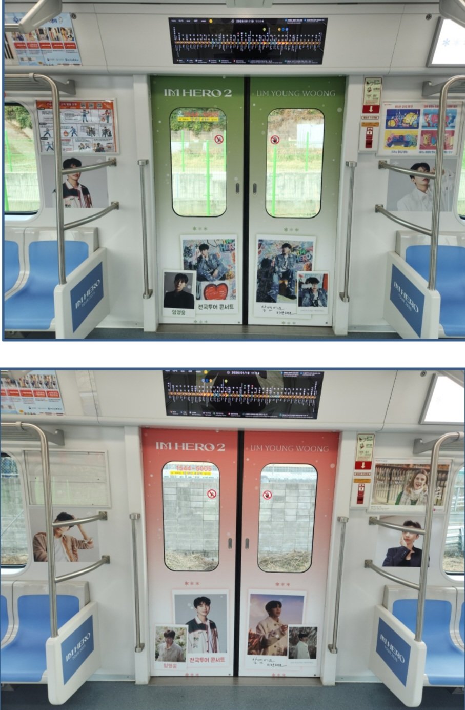 랩핑 열차는 12편성 중 8칸으로 구성됐다. 이 가운데 4번째 칸은 임영웅의 모습을 담은 올랩핑으로 꾸며졌고, 나머지 7칸은 ‘I‘m Hero 2’의 대표곡 제목과 액자형 이미지로 채워졌다. 해당 광고는 1월 21일부터 2월 20일까지 한 달간 운영된다.