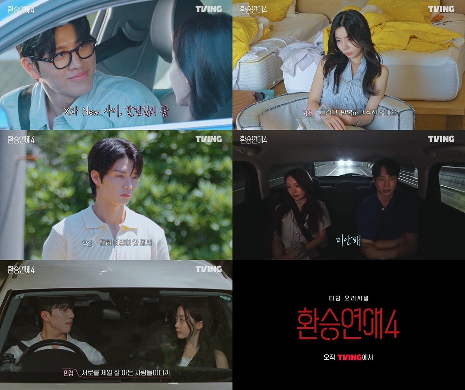오늘(21일) 공개될 티빙 오리지널 ‘환승연애4’ 최종화에서는 11인의 남녀 입주자들이 각자의 선택을 내리는 모습이 그려진다. X와 NEW 사이 갈림길에 선 이들은 마지막을 앞두고 진심을 남김없이 꺼내며 최선의 결정을 한다고 해 기대감이 모인다.