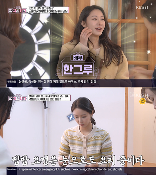 한그루는 고마운 마음을 전하고 싶어 직접 요리를 대접하고 싶었다고 밝혔다. 장을 봐 온 재료로 정성스러운 요리를 선보이며 요리 고수 면모도 드러냈다.