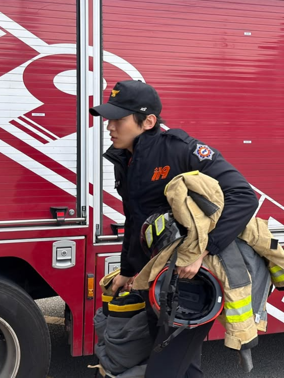 특히 소방복 위로도 감춰지지 않는 탄탄한 피지컬과 묵직한 아우라가 시선을 끌었다. UDT 출신답게 다져진 근육질 몸매와 덱스 특유의 날카로운 눈빛이 어우러지며 ‘상남자’ 이미지를 더욱 부각시켰다. 마치 영화의 한 장면 같은 장면에 팬들의 반응도 이어졌다.