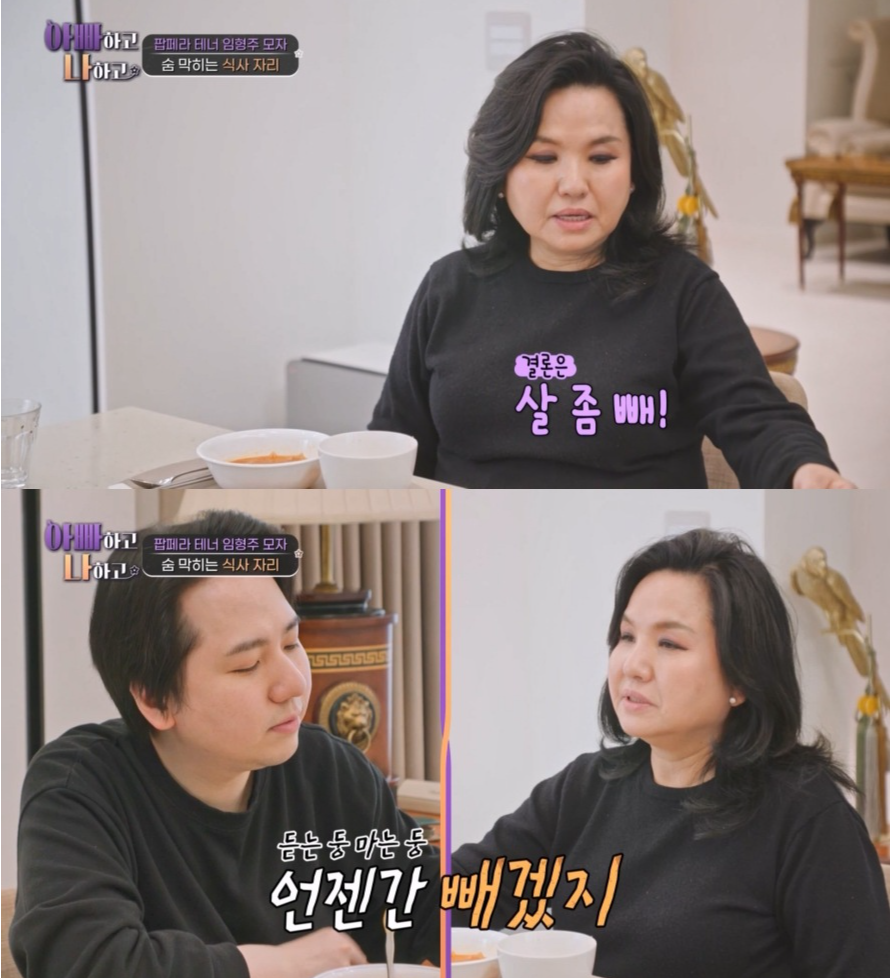 소속사 대표이기도 한 어머니는 ‘아티스트 관리’ 모드로 “살 좀 빼라. 예전 사진 보면 얼마나 샤프하니”라며 직설을 날렸다. 임형주는 “나잇살이야”라고 맞받아쳤고, 어머니는 “나잇살은 핑계”라고 받아치며 팽팽한 신경전을 이어갔다. 임형주가 “됐어”라고 말대답하자 어머니는 3년 전 화보 사진을 꺼내 들며 다시 한 번 다이어트 압박을 더했다.