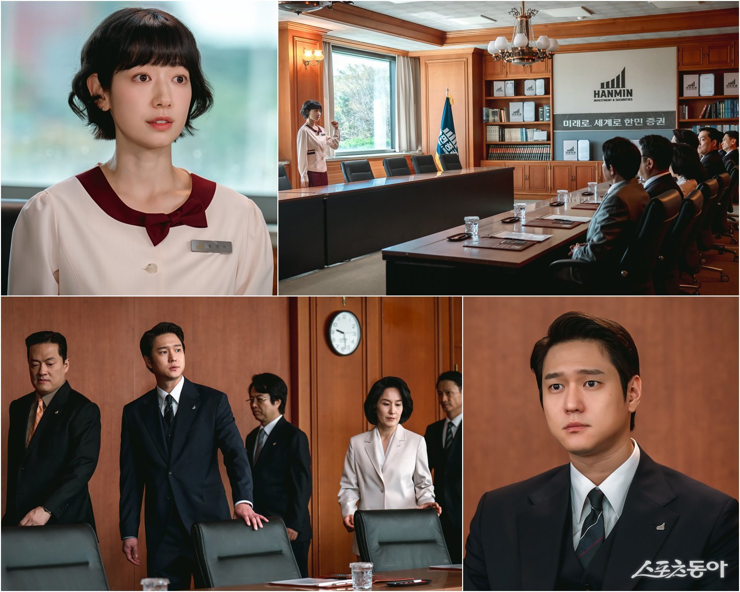 공개된 스틸에는 홍금보가 회의실에서 임원진과 홀로 대면하는 장면이 담겼다. 신입 채용 면접부터 입사 시험 문제 오류를 지적하며 강렬한 첫인상을 남겼던 홍금보는 또 한 번 시선을 끄는 행동으로 ‘조용해야 할’ 언더커버 작전에 차질을 낸다. 결국 임원들이 한자리에 소집될 만큼의 사건이 벌어진 것으로 예고돼 궁금증을 키운다.