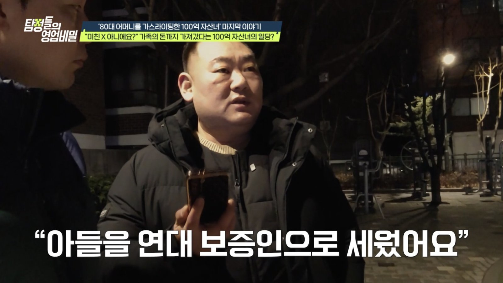 한편 백호 탐정단은 또 다른 핵심 인물 강영호(가명)와도 대면한다. 그는 자신이 “100억 자산녀에게 가장 먼저 돈을 건넨 피해자”라고 주장하면서도, 실제로 100억 원의 자산이 존재한다고 확신했다. 그는 “이틀 뒤 모든 채무가 정리된다. 의뢰인 어머니의 돈도 전액 상환된다”며 “수갑 찰 일은 없다”고 호언장담하며 만남을 제안한다.