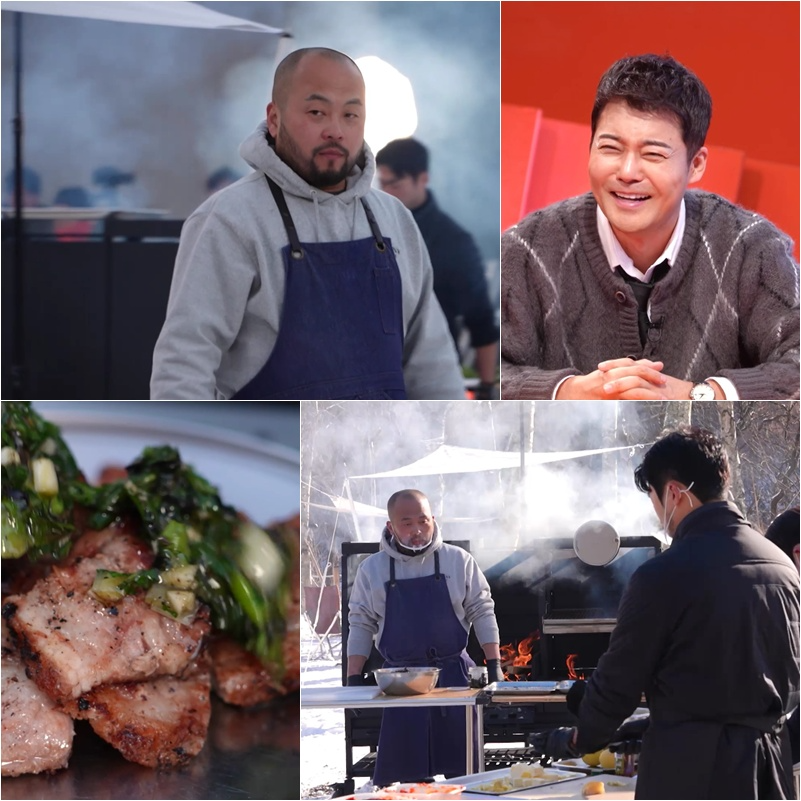 데이비드 리는 약 800만 원 상당의 ‘우드 파이어 그릴’을 꺼내 들고 캠핑용 바비큐를 시작한다. 선택한 메뉴는 특대형 가마솥에 끓이는 이탈리아식 해물 수프 ‘치오피노’와 100인분 통 삼겹살이다. 새우와 조개를 가득 넣은 치오피노에 토마토 페이스트, 화이트와인, 레몬을 더하고 소시지 킬바사와 베이컨까지 넣어 압도적인 비주얼을 완성한다. 이를 지켜보던 박명수는 “미치겠다. 진짜 맛있겠다”고 반응한다.