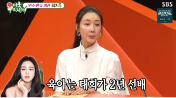 서장훈이 김태희에게 육아 조언을 구한다는 이야기를 꺼내자 최지우는 “발레 학원도 같이 보낸다. 그 친구가 2년 선배 맘이라 제가 도움을 엄청 받는다”고 말했다. 육아템 공유는 물론 아이 옷을 물려받는 일도 있다고 덧붙였다.