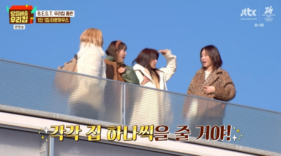 이후 멤버들은 모듈러 주택이 모여 있는 타운하우스로 이동했다. 가족이나 친구들과 이웃처럼 지낼 수 있는 집은 시청자들이 꼽은 ‘역대 최다 픽’ 로망이기도 했다. 김성령은 동생들을 위해 집을 하나씩 준비했고, 네 사람은 ‘1인 1집’이라는 로망에 설렘을 감추지 못했다.