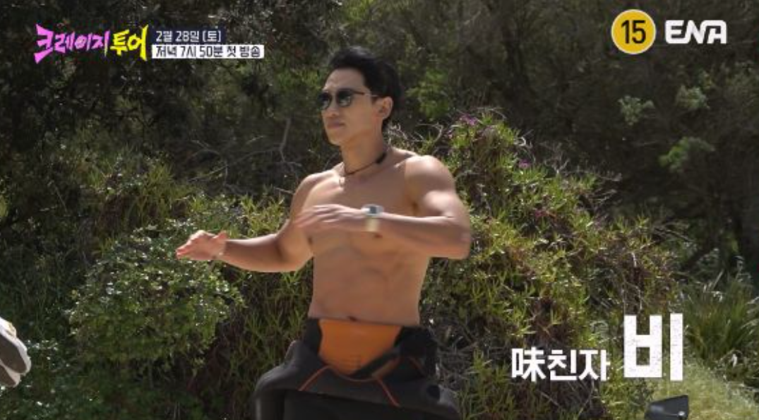 비는 맏형이자 중심축 역할을 맡는다. “시간이 없어서 운동 못 한다는 건 다 거짓말”이라는 단호한 한마디처럼 어떤 상황에서도 물러서지 않는 태도로 팀을 이끈다. 체력은 물론 먹방까지 자신감을 드러내며 크레이지 투어의 추진력을 담당한다.