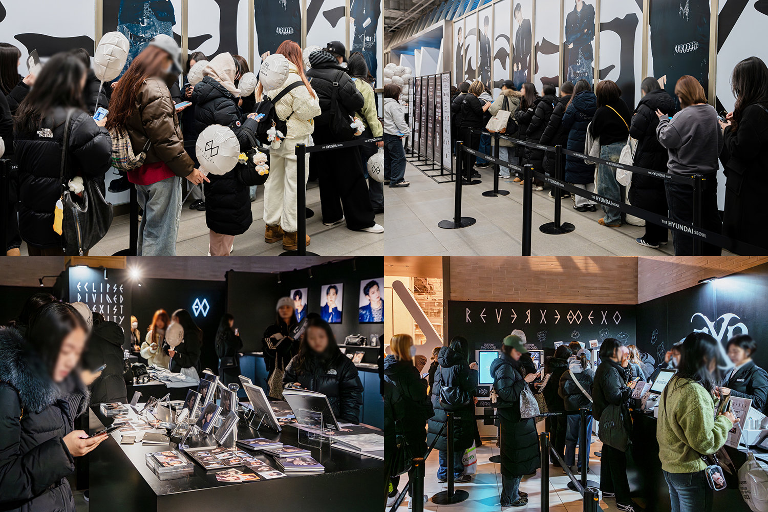 1월 20~27일 8일간 서울 영등포구 더현대 서울 B1 이벤트 플라자에서 열린 엑소 팝업스토어 ‘REVERXE THE WORLD’(리버스 더 월드)는 매일 현장 방문객들의 대기 행렬은 물론 회차별 입장 매진과 MD 품절 상황이 이어졌다.