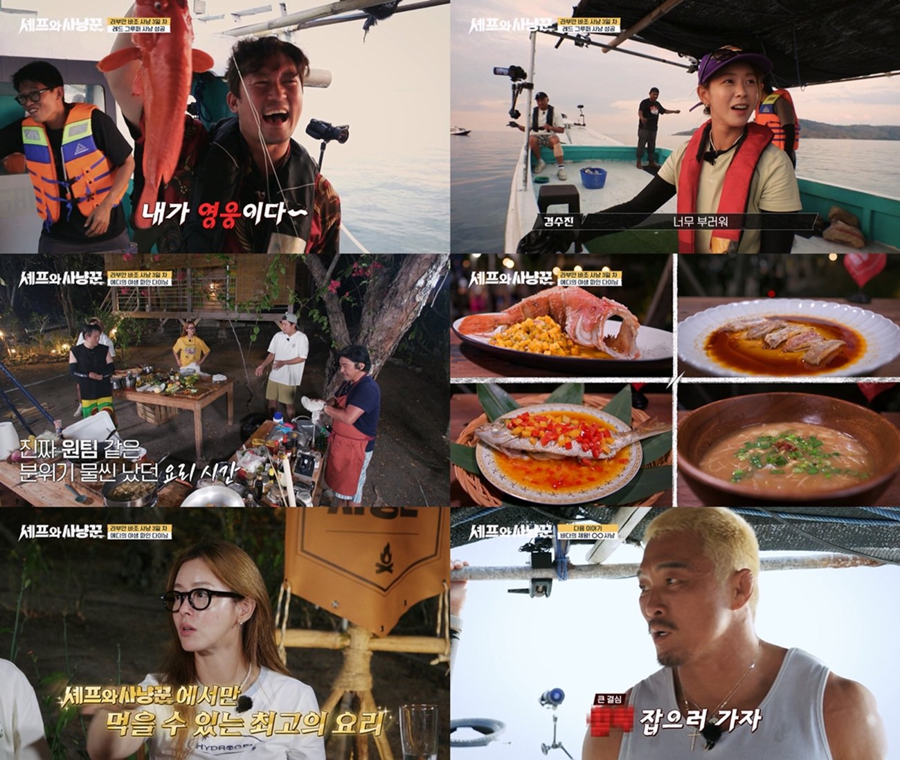 지난 29일 방송에서는 야생 한가운데서 펼쳐진 치열한 사냥 현장과, 직접 얻은 식재료로 완성한 요리들이 공개됐다. 특히 멤버들은 늦은 오후까지 낚시에 집중하던 중 김대호가 47cm에 달하는 대형 토마토 그루퍼를 포획하며 분위기를 단숨에 끌어올렸다. 김대호는 “내가 영웅이다”라고 외치며 기쁨을 감추지 못했다.