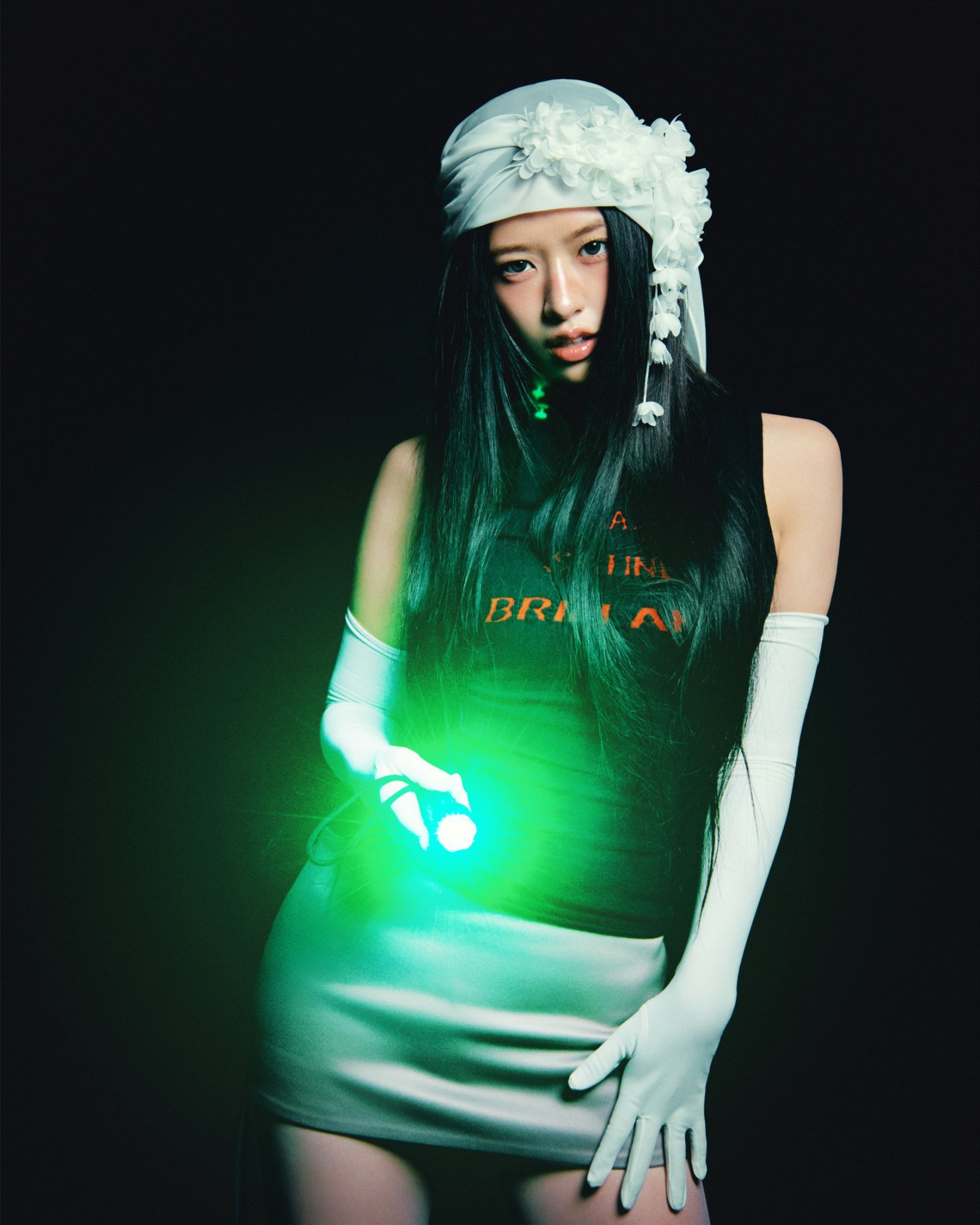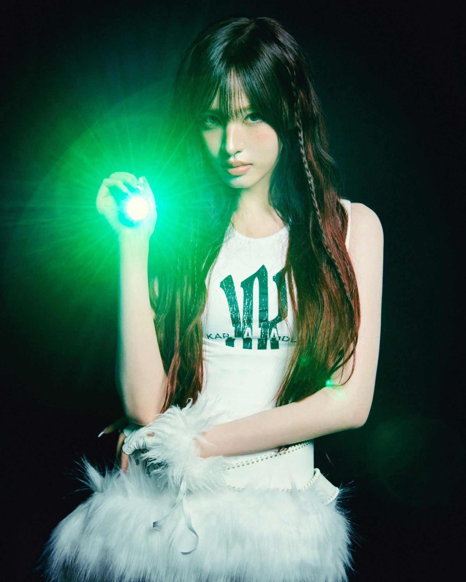 공개된 이미지 속 아이브는 칠흑 같은 어둠 속에서 네온 그린 플래시 라이트를 활용해 미스터리하면서도 긴장감 넘치는 분위기를 연출했다. 화이트와 실버 그레이 톤의 의상에 퍼(Fur) 소재를 믹스매치한 스타일링은 시크하고 모던한 매력을 배가시켰다. 특히 화이트 레오파드 패턴, 볼드한 벨트 등 개성 강한 아이템을 각 멤버만의 스타일로 소화하며 압도적인 아우라를 완성했다.