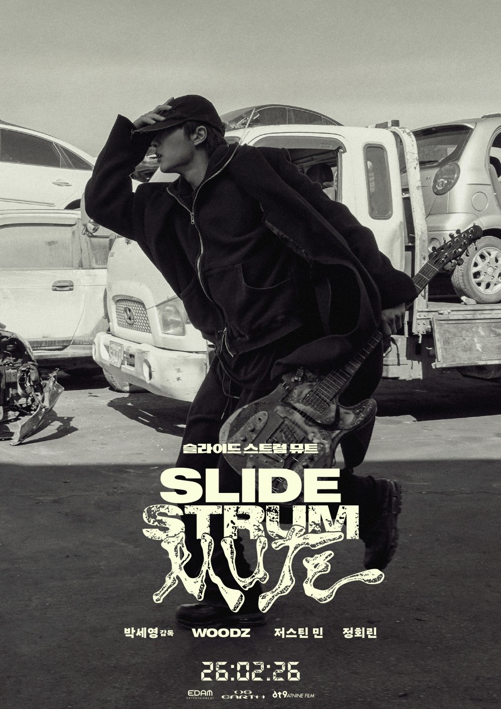 ‘슬라이드 스트럼 뮤트’는 오디션에 불합격한 어느 밤, 의문의 남자가 맡긴 부서진 기타를 연주한 우진이 저주받은 시간을 가로질러 욕망으로 질주하는 미스터리 쇼트 필름이다.
