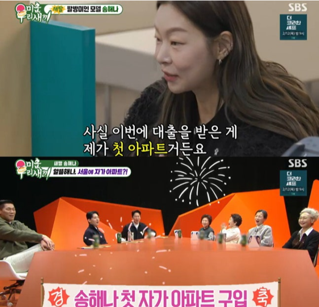 8일 밤 방송된 SBS ‘미운 우리 새끼’에 출연한 송해나는 모델계와 예능계를 넘나드는 만능 엔터테이너의 일상과 함께 첫 자가 아파트를 최초로 공개했다. 송해나는 “이번에 이사를 하면서 대출을 받았다”며 “어떻게 하면 절약하면서 잘 갚을 수 있을지 상담을 받아보고 싶다”고 말했다.