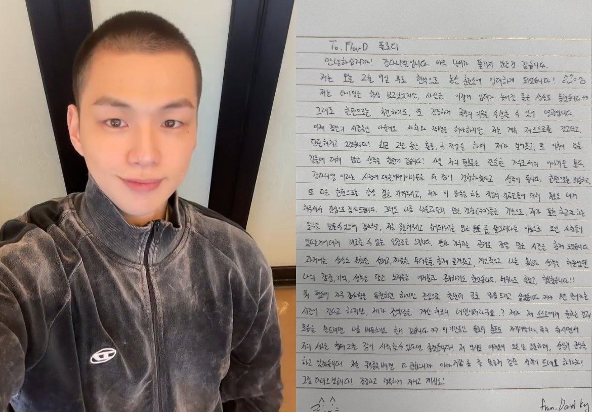 가수 강다니엘이 손편지를 남기고 군대로 떠났다.