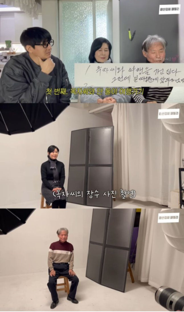 8일 유튜브 채널 ‘광산김씨패밀리’에는 ‘언중-옥자 부부의 영정사진’이라는 제목의 영상이 공개됐다. 김승현은 새해를 맞아 부모님에게 소원을 적어 달라고 부탁했고, 어머니는 홀로 여행 가기, 혼자 살기, 가족과 속초 여행 가기 등을 적었다.