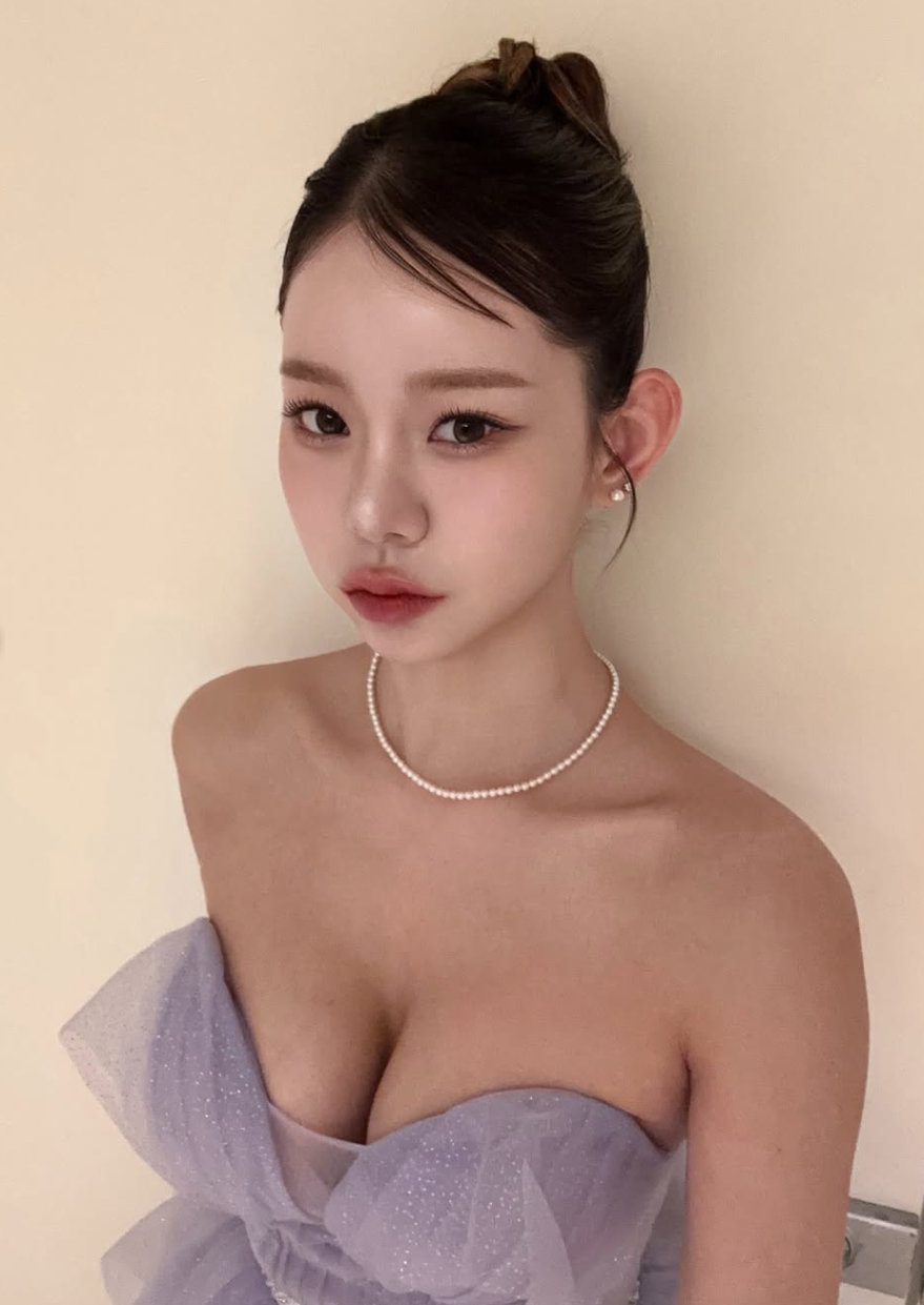 특히 깔끔하게 올린 업스타일 헤어와 진주 액세서리로 고급스러움을 더했지만, 그보다 더 강렬한 건 단연 압도적인 비주얼 존재감. 청순함과 섹시함이 동시에 폭발하며 반전 매력을 보여줬다.