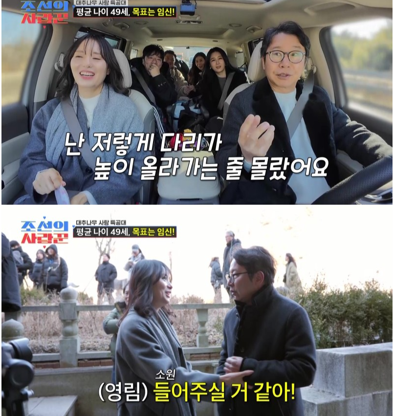 9일 밤 10시 방송된 TV CHOSUN ‘조선의 사랑꾼’에서는 심현섭·정영림, 윤정수·원진서, 배기성·이은비가 2세를 위한 소망을 품고 경주로 향하는 모습이 그려졌다. 이날 방송은 전국 시청률 3.7%, 분당 최고 4.0%를 기록하며 전체 동시간대 예능 시청률 1위에 올랐다.