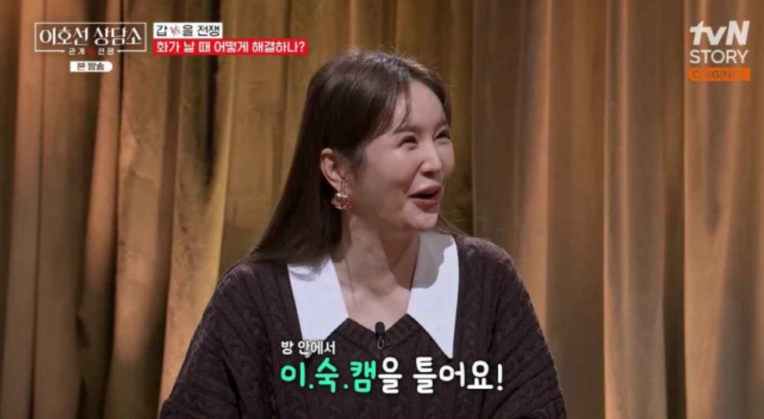 10일 방송된 tvN STORY ‘이호선 상담소’ 6화에서는 가족 내 ‘갑을 전쟁’을 주제로 다양한 이야기가 오갔다. 이날 장영란은 이호선에게 평소 화를 어떻게 다스리는지 질문하며 자신의 경험도 함께 전했다.