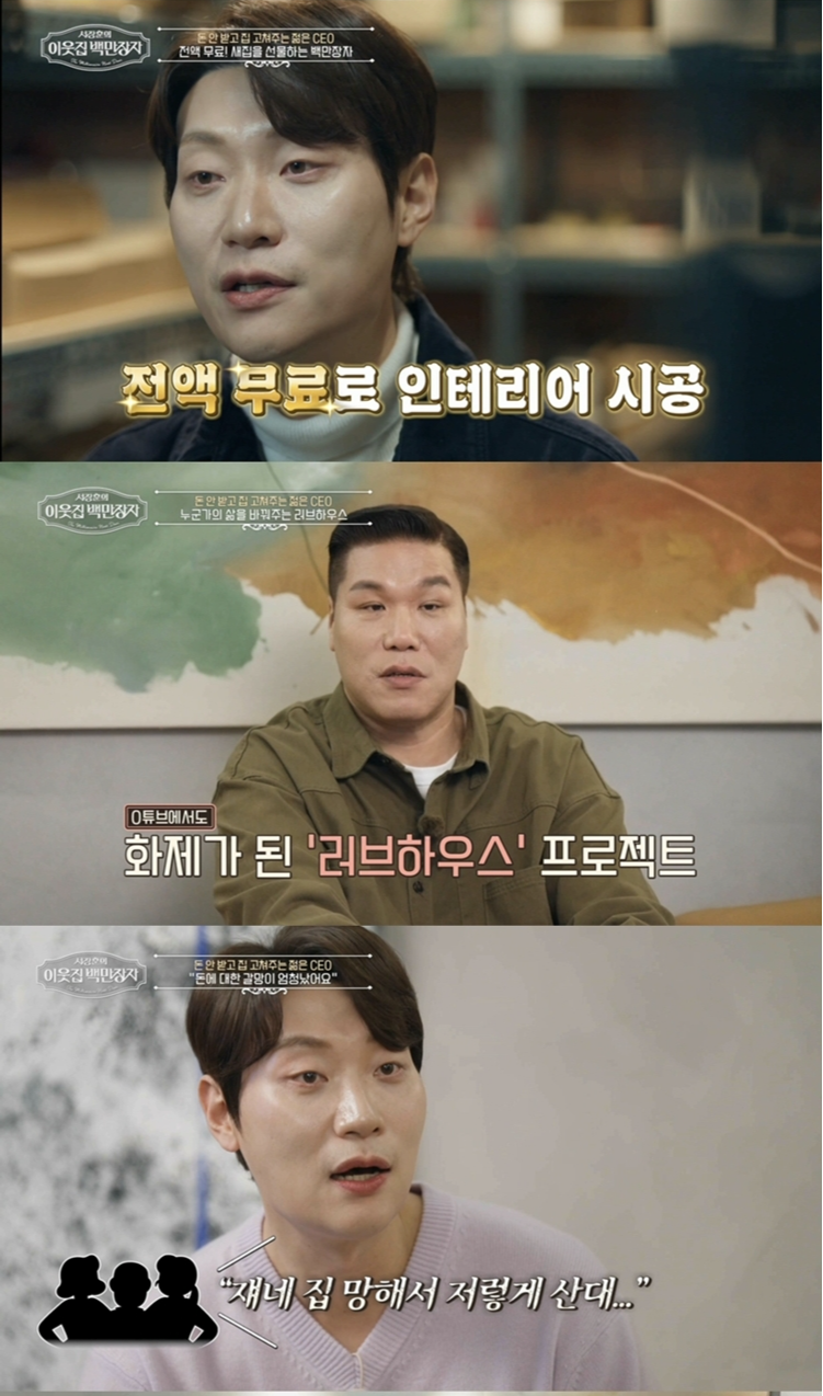 박치은은 ‘유튜브판 러브하우스’로 불리는 주거 개선 프로젝트도 소개한다. 사연자를 선정해 시공 비용과 자재를 100% 무료로 지원하는 방식으로 2021년부터 현재까지 프로젝트를 이어오고 있다. 누수와 곰팡이로 가득했던 집이 새 보금자리로 바뀌는 과정과 현장 비하인드는 방송에서 공개된다.