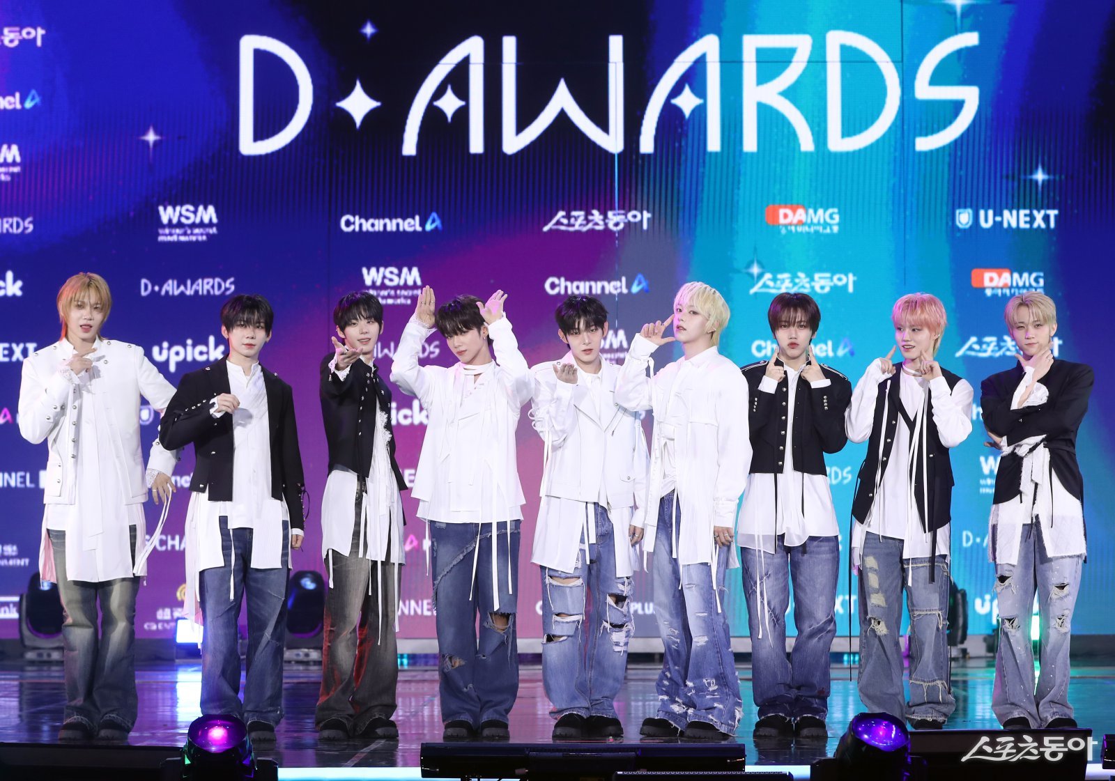 11일 오후 서울 고려대학교 화정체육관에서 열린 ‘제2회 디 어워즈(D AWARDS with upick)’ 포토월 행사에서 아홉(AHOF)이 포토타임을 진행하고 있다.