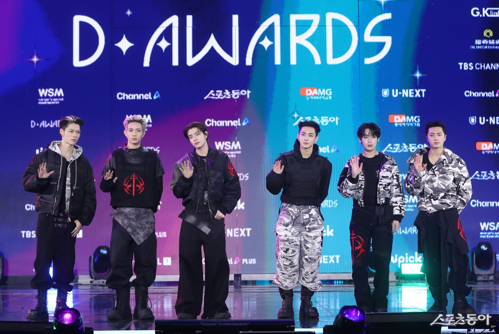11일 오후 서울 고려대학교 화정체육관에서 열린 ‘제2회 디 어워즈(D AWARDS with upick)’ 포토월 행사에서 엔하이픈이 포토타임을 진행하고 있다.