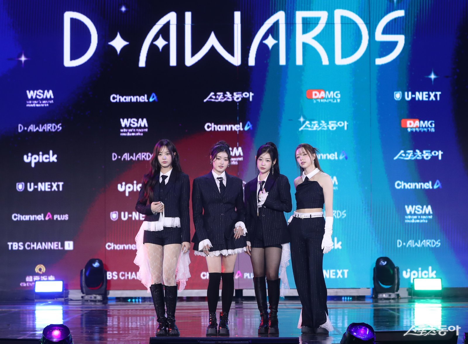 11일 오후 서울 고려대학교 화정체육관에서 열린 ‘제2회 디 어워즈(D AWARDS with upick)’ 포토월 행사에서 피프티피프티가 포토타임을 진행하고 있다.
