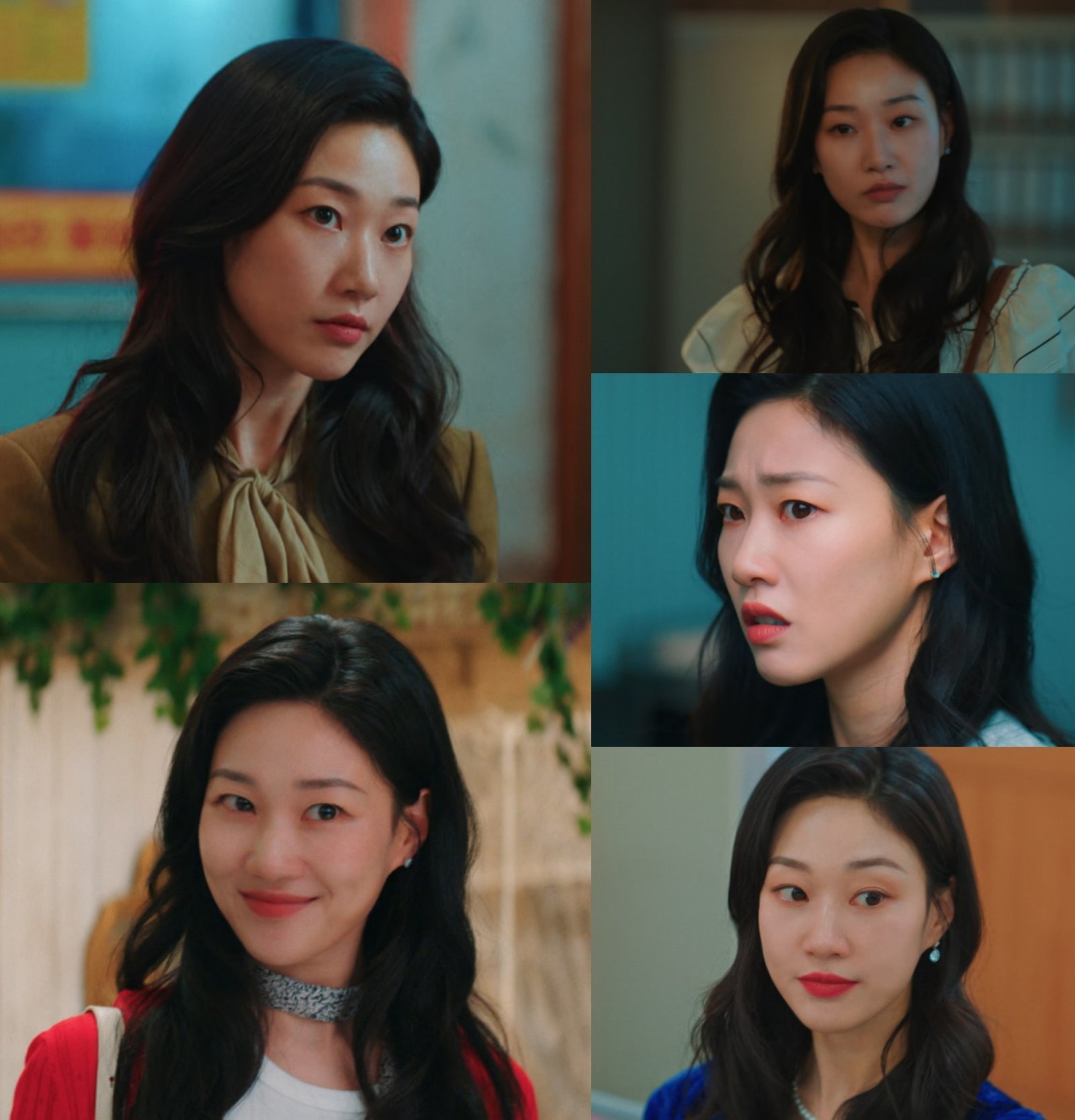 사복 스타일링도 캐릭터를 완성한다. 화려한 패턴 스카프, 롱스커트 등으로 단정함과 동시에 경력 많은 직장인의 분위기를 더했다. 고복희가 가진 ‘왕언니’ 매력을 의상으로 밀어 올린 셈이다.