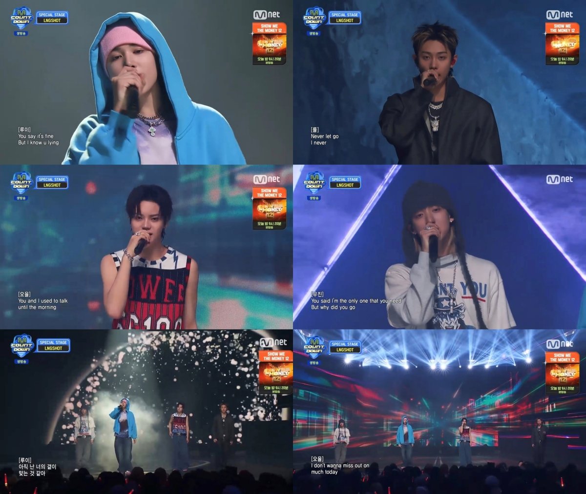 LNGSHOT(롱샷, 오율·률·우진·루이)은 12일 방송된 Mnet ‘엠카운트다운’에 출연해 데뷔 EP ‘SHOT CALLERS(샷 콜러스)’의 수록곡 ‘Never Let Go(네버 렛 고)’ 무대를 펼쳤다.