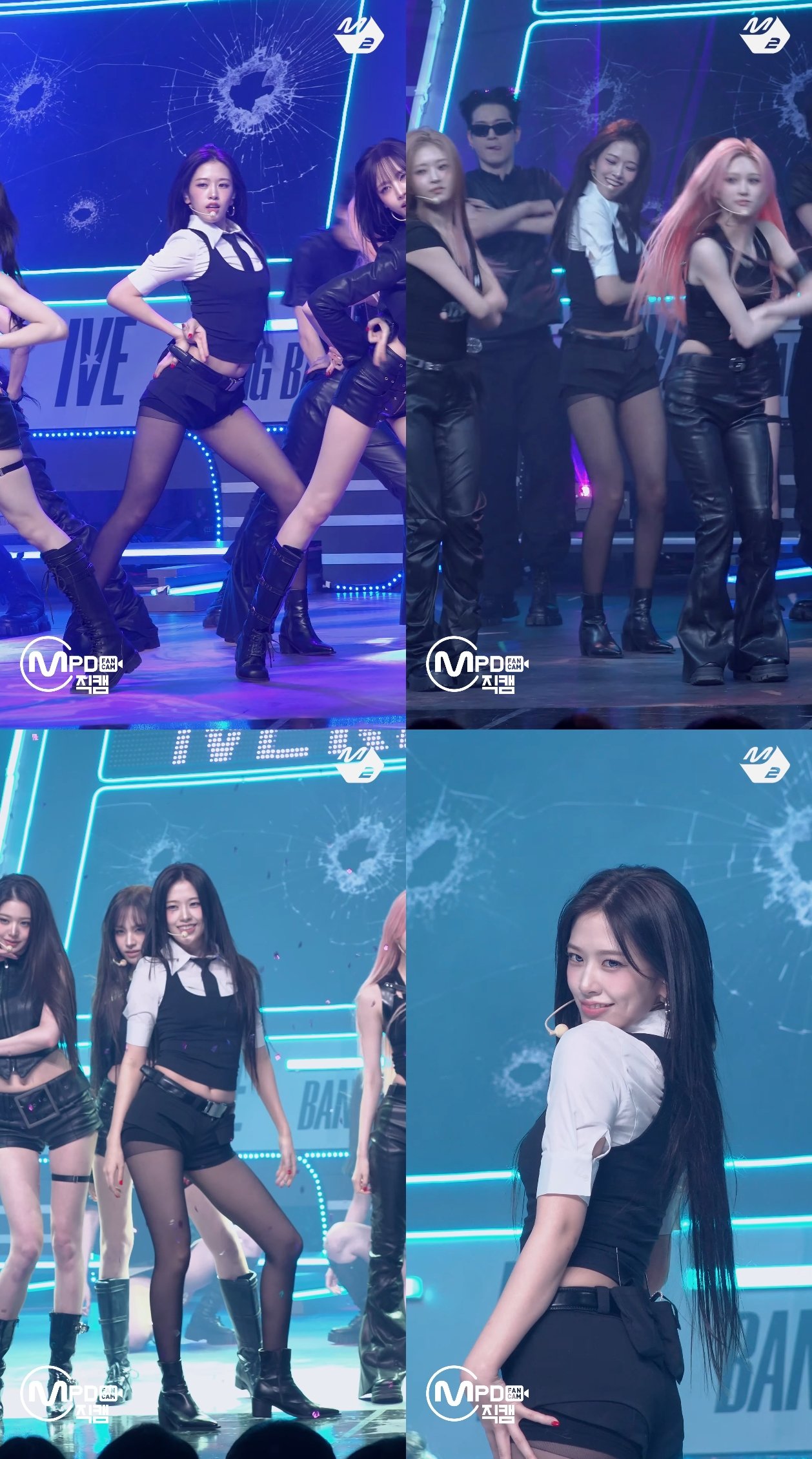 아이브는 12일 방송된 Mnet 엠카운트다운(이하 ‘엠카’)에서 지난 9일 발매된 정규 2집 ‘REVIVE+(리바이브 플러스)’ 선공개곡 ‘BANG BANG(뱅뱅)’ 무대를 최초 공개했다. 이날 멤버들은 ‘스타쉽의 아이돌’답게 블랙 레더 의상을 입고 무대에 등장, 강렬한 비주얼을 자랑했다. 파워풀한 퍼포먼스와 군무, 몰입감 있는 표정 연기가 어우러진 가운데 곡의 강렬한 사운드와 맞물려 폭발적인 시너지를 만들어냈다.