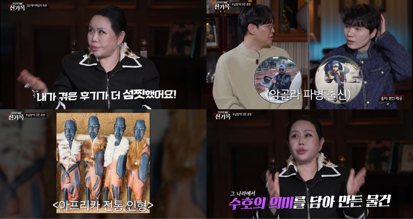 해외에서 섣불리 가져오면 안 되는 물건 이야기도 이어진다. 신정환은 아프리카 앙골라 파병 시절을 떠올리며 현지 특색이 담긴 기념품을 구매해 왔다고 밝혔고, 무속인들은 “해외 기념품 중 그곳만의 의미가 담긴 물건일수록 혼이 깃들기 쉽다”며 우려를 전했다.