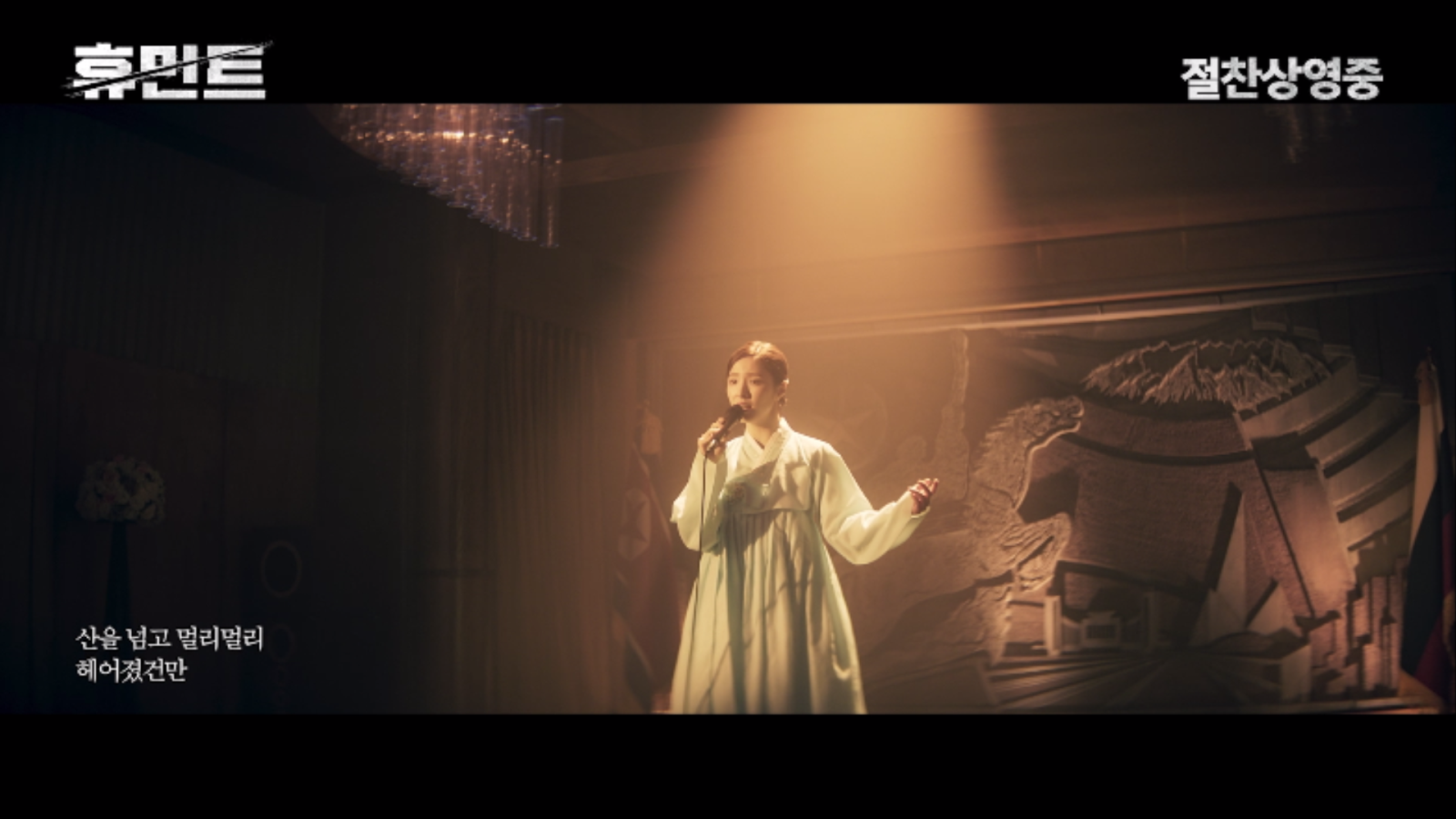 공개된 뮤직비디오는 ‘채선화가 박건을 위해 부르는 생일 선물’ 이라는 음성으로 시작해 오래된 두 사람의 관계를 짐작게 한다. 야심한 밤 채선화의 목소리를 듣는 박건의 모습위로, 북한 식당에서 공연을 하고 있는 채선화의 모습으로 연결이 된다. 두 사람의 사연이 담긴 음악은 아련한 감성을 전달하며 관객들에게 여운을 남긴다. 신세경이 부른 ‘이별’은 1973년 발매된 패티김의 곡으로 서정적인 가사와 멜로디가 영화 ‘휴민트’ 속 박건&채선화의 서사와 완벽하게 맞물린다