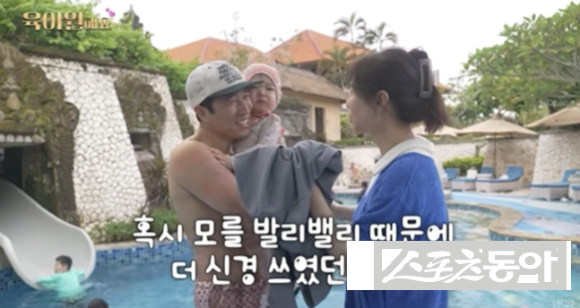 아내는 “왜 그러는 거야”라며 놀랐고 영상에는 ‘혹시 모를 발리밸리 때문에 더 신경 쓰였던 엄마’라는 자막이 더해졌다. 물갈이성 장염을 뜻하는 ‘발리밸리’를 우려해 예민해졌던 상황이라는 설명이다.