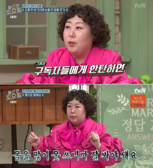 21일 밤 방송된 tvN 예능 ‘놀라운 토요일’에 출연한 신기루는 시작부터 촬영장 기온에 대한 ‘철학’을 꺼냈다. 과거 두 차례 출연 당시 높은 촬영장 기온 때문에 힘들었다고 말한 그는 에어컨에 가장 가까운 자리를 배정받고도 “시원하지 않다”며 아쉬움을 드러냈다.