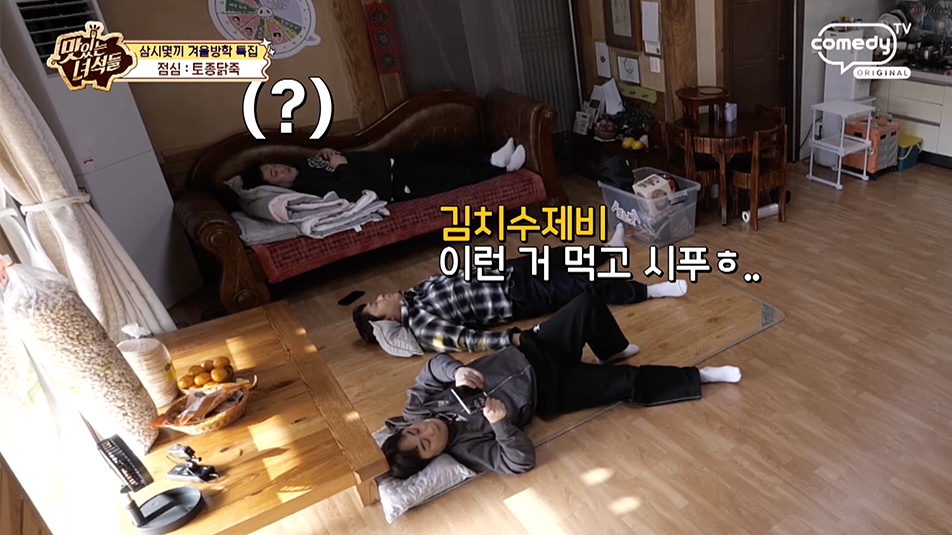 20일 방송된 코미디TV ‘맛있는 녀석들’ ‘삼시몇끼 겨울방학’ 특집에서는 충남 부여 반교마을을 찾은 김준현, 문세윤, 황제성, 김해준의 모습이 그려졌다. 이날 문세윤은 ‘쪼는맛’에 걸려 첫 끼를 함께하지 못했고, 다른 멤버들만 시골 밥상을 즐겼다.