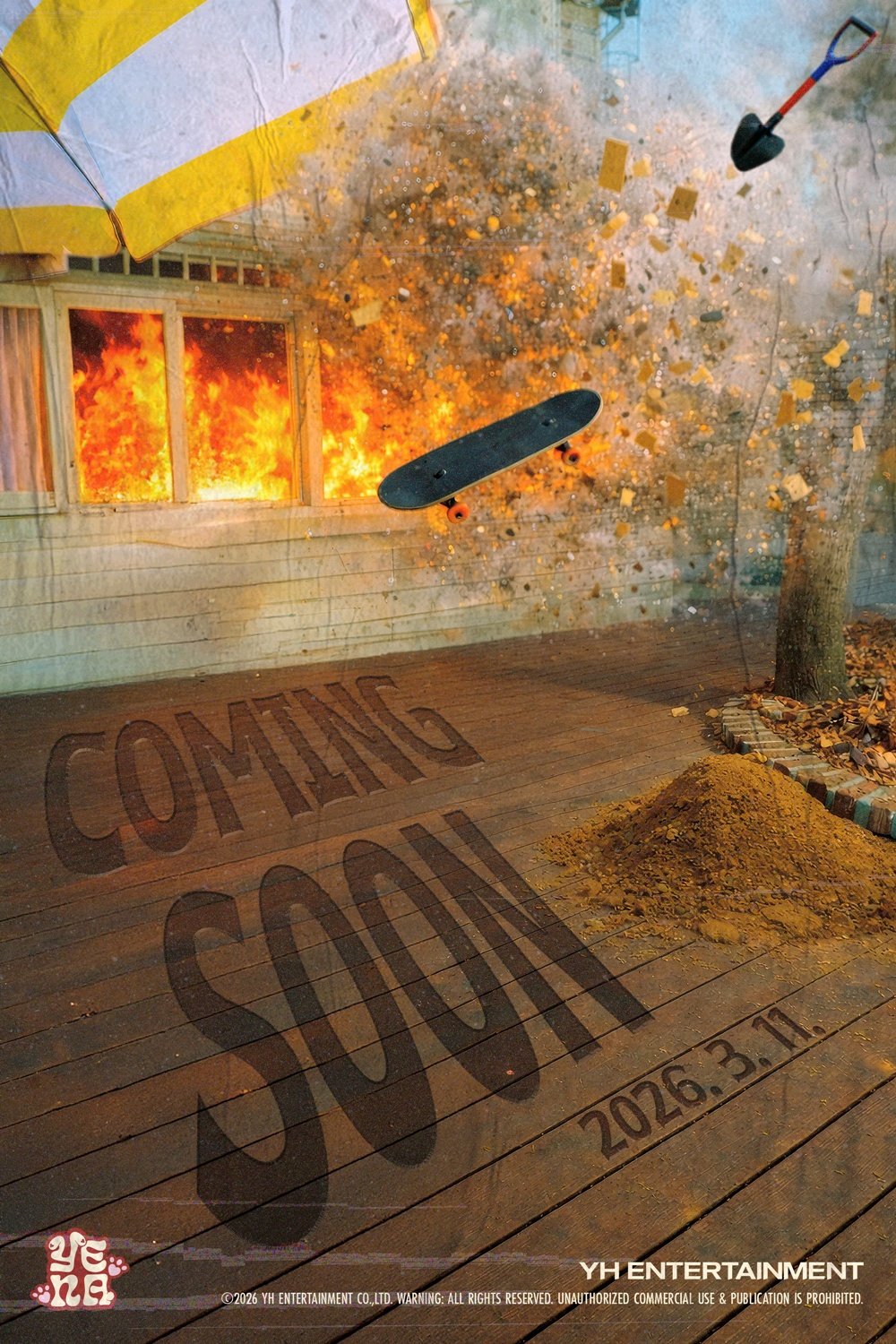 최예나는 23일 공식 SNS를 통해 커밍순 이미지를 공개하며 3월 11일 컴백을 공식화했다. 이미지에는 화염에 휩싸인 건물과 재로 사라져 가는 나무가 등장해 강렬한 분위기를 자아냈다. 그 위로 스케이트보드와 삽 등이 공중에 날아가는 듯한 요소가 더해져 폭발적인 긴장감과 극적인 장면을 완성했다.