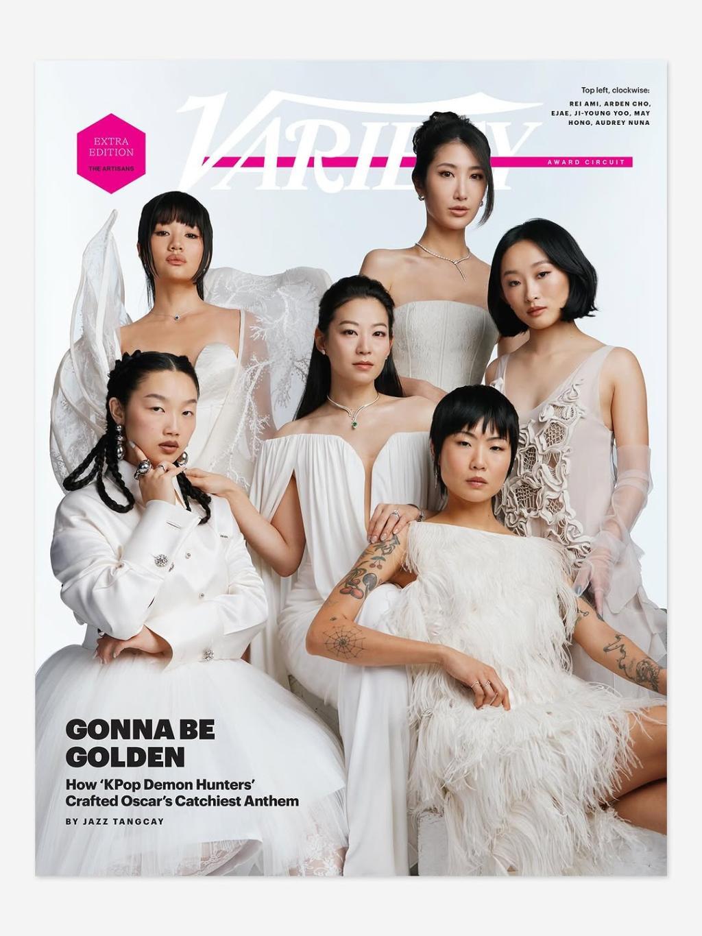 이런 가운데 북미 최고 권위의 연예 매체인 버라이어티는 최신호 커버 모델로 ‘케데헌’ 속 걸그룹 헌트릭스의 목소리 연기와 가창을 맡은 6인의 주역들을 발탁해 화제를 모으고 있다. 헌트릭스의 리더 루미를 맡은 아덴 조와 이재를 비롯해 유지영과 레이 아미(조이), 메이 홍과 오드리 누나(미라)가 표지를 장식했다.